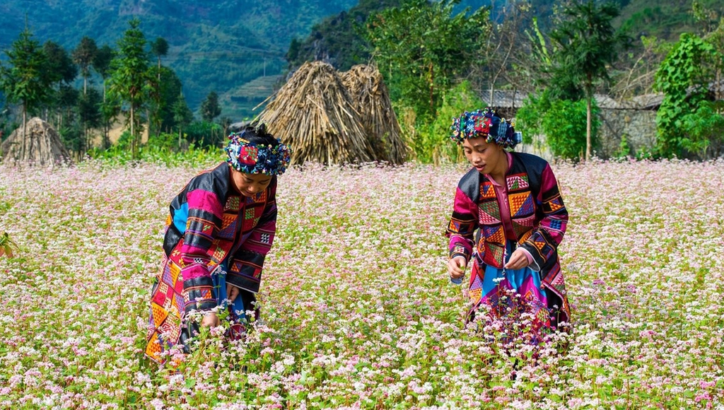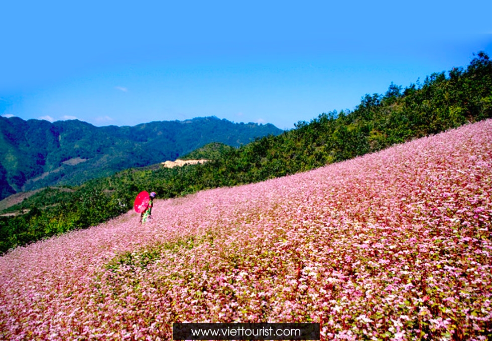 Đến Hà Giang, đoàn - khởi hành đi Cao nguyên Đá Đồng Văn. Trên đường đi Quý khách thỏa sức ngắm nhìn, và chụp ảnh trên những cánh đồng hoa Cải, hoa đào, hoa mận, hoa tam giác mạch bạt ngàn, đua nhau khoe sắc, núi non trùng điệp hùng vĩ thơ mộng (tùy theo mùa hoa nở đặc trưng).