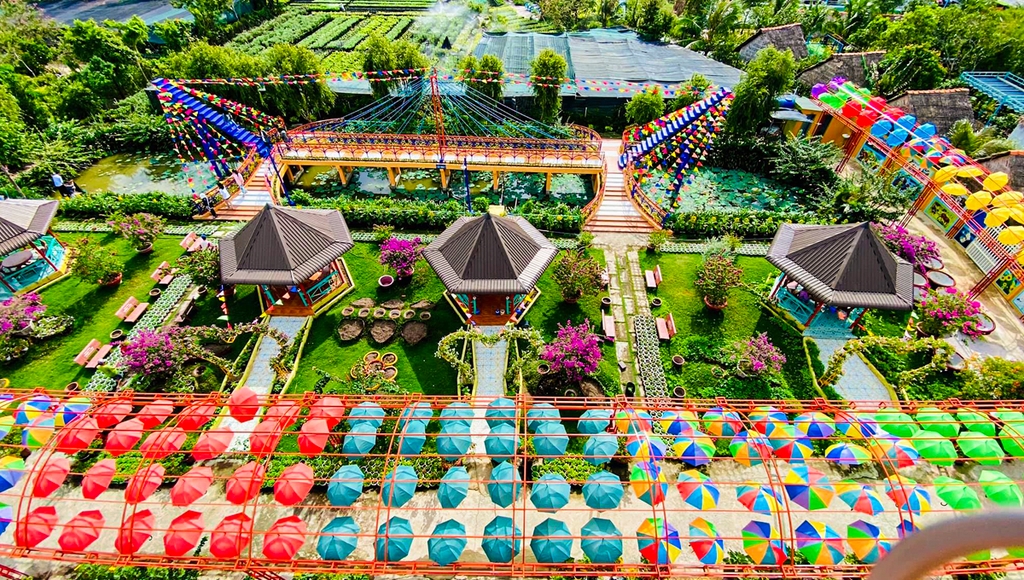 - Sáng 5h00: Đón khách tại điểm hẹn, khởi hành đi Tp. Tân An - thành phố thuộc tỉnh Long An, đi qua cung đường nổi tiếng với con đường Bánh Tráng Trộn & Bánh Mì khổng lồ. Đến Mỹ Tho dừng chân tại nhà hàng, ăn sáng tham quan TRẠI RẮN ĐỒNG TÂM (Tự phí), sau đó lên tàu đi CÙ LAO THỚI SƠN. Đi thuyền trên sôngTiền, chụp hình với trăn gấm, kèo ong…; nghe đờn ca tài tử, thưởng thức các loại trái cây miền nhiệt đới, chèo xuồng ba lá trong rạch dừa nước.